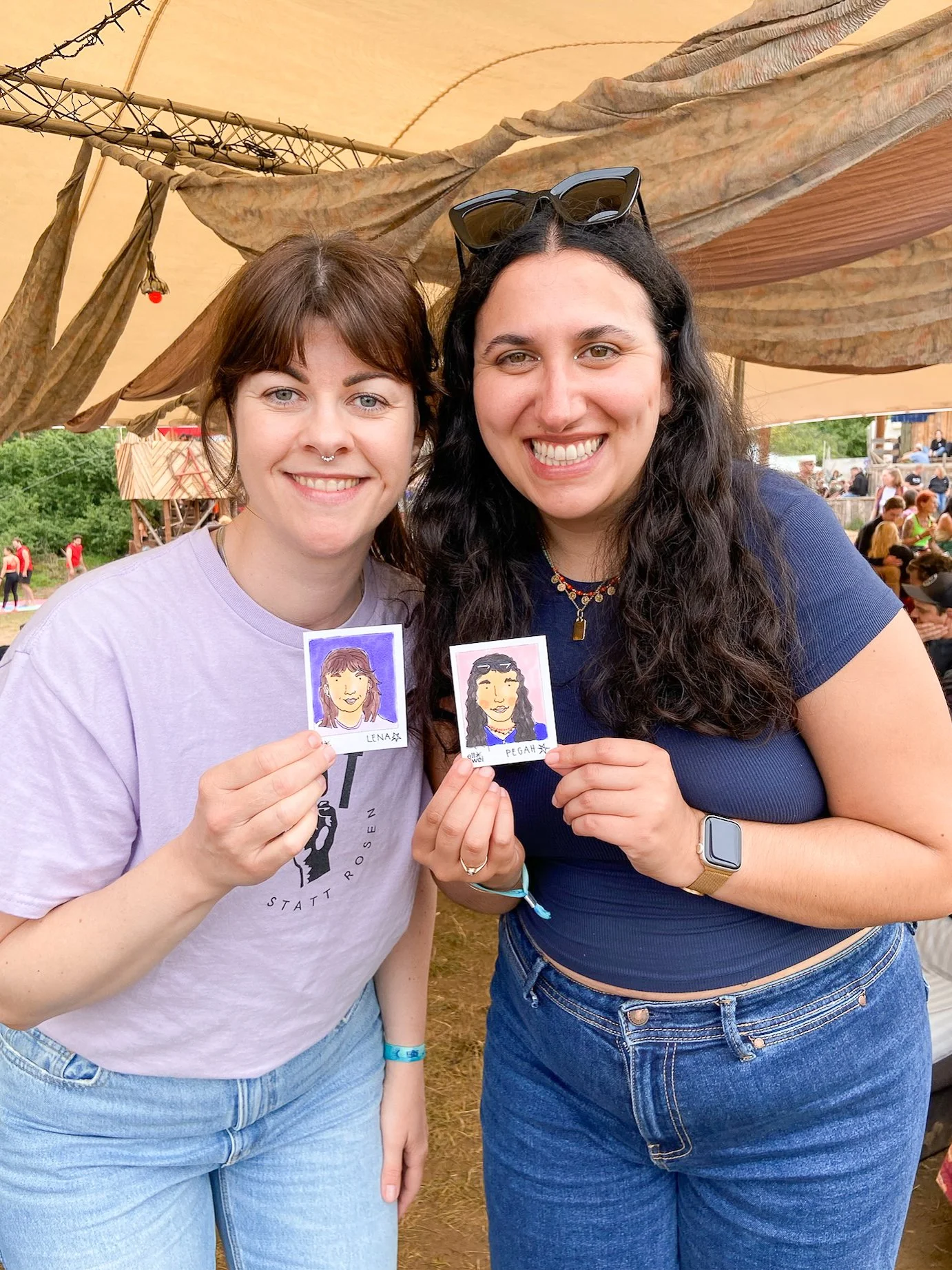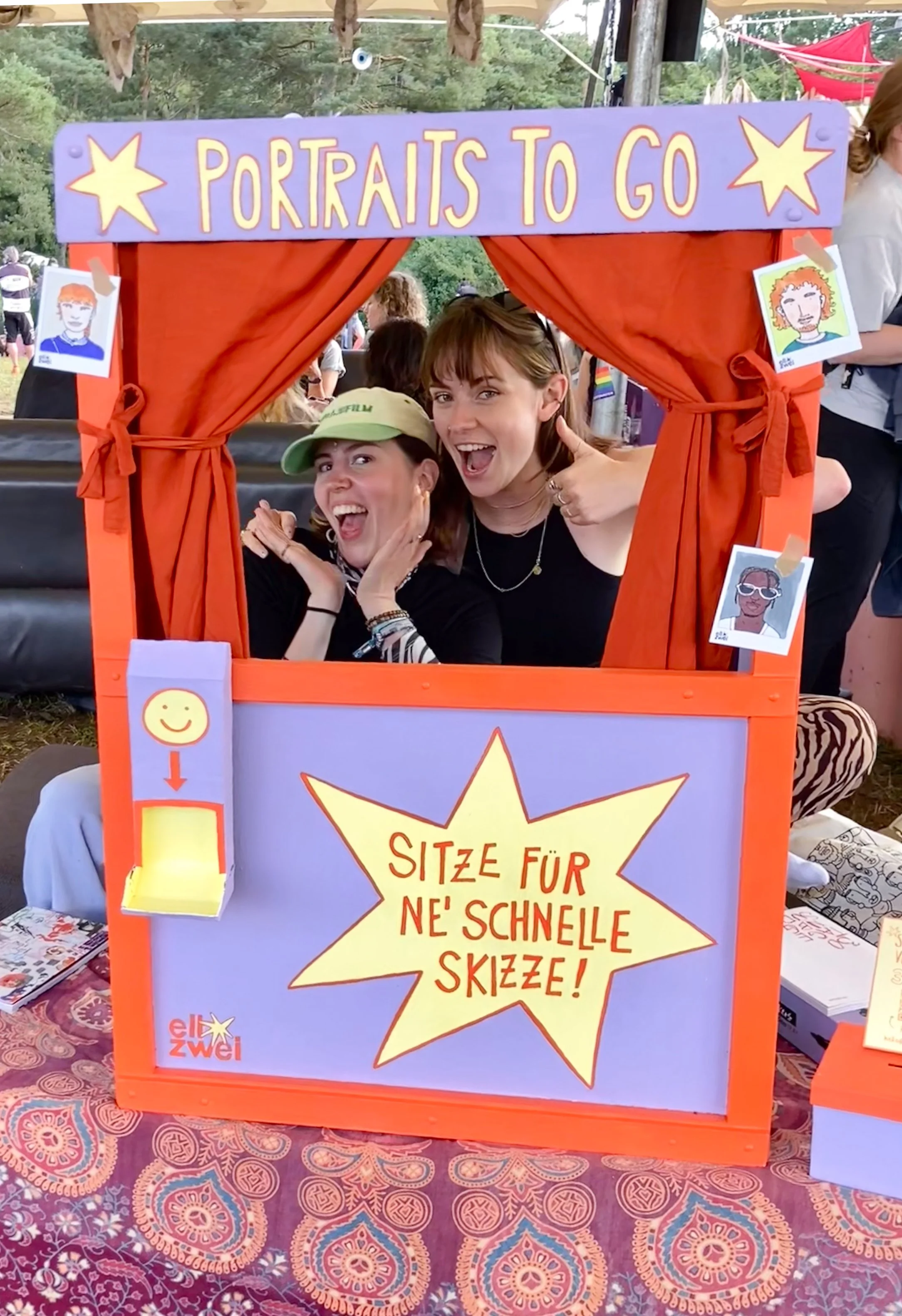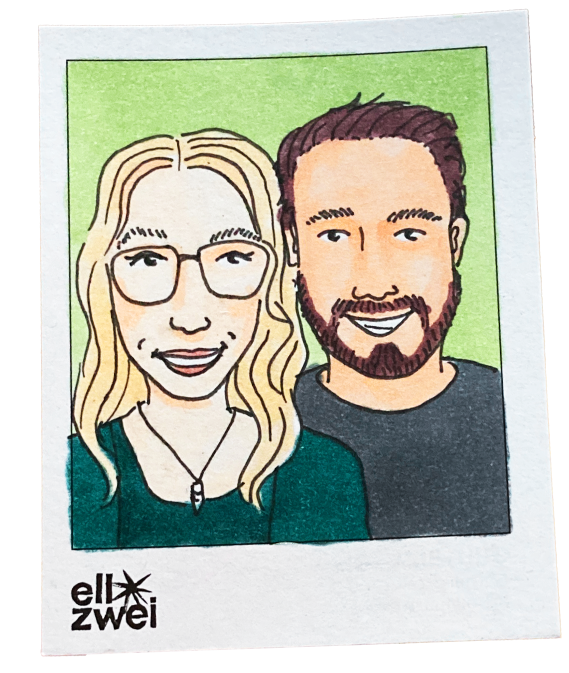 Wir sind Lara und Laura, das kreative Duo hinter dem Vorhang unserer analogen Fotobox. Unsere Augen sind die Kamera, unsere Hände halten dein Portrait auf einem selbstgezeichneten Polaroidbild fest.